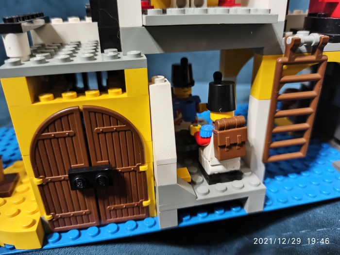 Набор небольшой, зато есть пушка, лодка и три минифигурки. Читал, что детали с принтами ценятся, так вот тут как раз одна стена с принтом под кирпич. Каждая минифигурка вооружена саблей, две из них пистолетом и один солдат мушкетом. Меня в то время поразило, что пушка стреляет и достаточно далеко. У имперских солдат (это уже кстати красные мундиры, я знаю до этого были синие, но сейчас это легенда, так как ходят слухи, что всех синих мундиров изгнали пираты со своих вод), есть погоны синие и жёлтые, кто из них старше рангом я не знаю, но предположу, что тот кто в треуголке и с жёлтыми погонами, так как солдат с синими погонами ещё и с рюкзаком, а старшему по званию носить рюкзак не положено, но я могу и ошибаться.