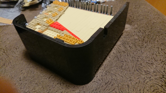 Все штырьки установлены, начинается сборка второй внутренней стенки, на которую будут крепиться струны