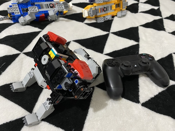 Вот тут мы видим уже знакомый нам джойстик, а у первого котика уже отрастает хвост. На этом моменте до меня начало доходить, что я слегка недооценил размеры будущего защитника вселенной (напомню, желтый лев - это левая нога).