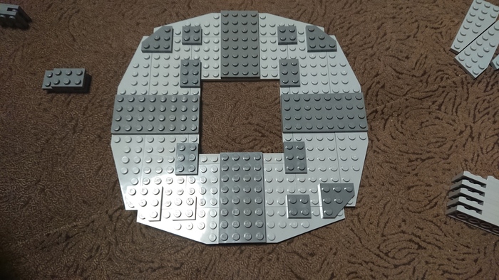 Начинается набор довольно прозаично - со сплющенного пончика, на который крепятся "стены", которые в будущем будут разделять отсеки гигантской космической станции.