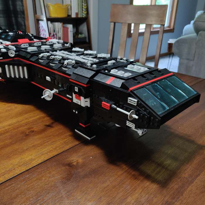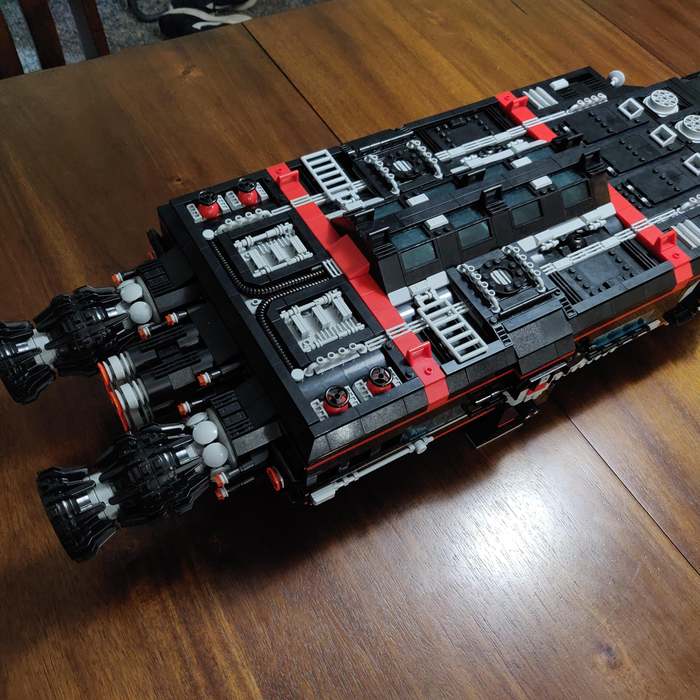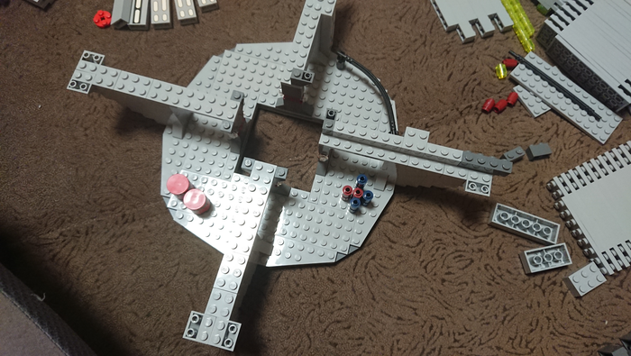 Далее модель начинает обрастать секциями палуб - две четвертинки полностью идентичны, за исключением декора. Слева, если присмотреться - стойка с четырьмя бластерами.