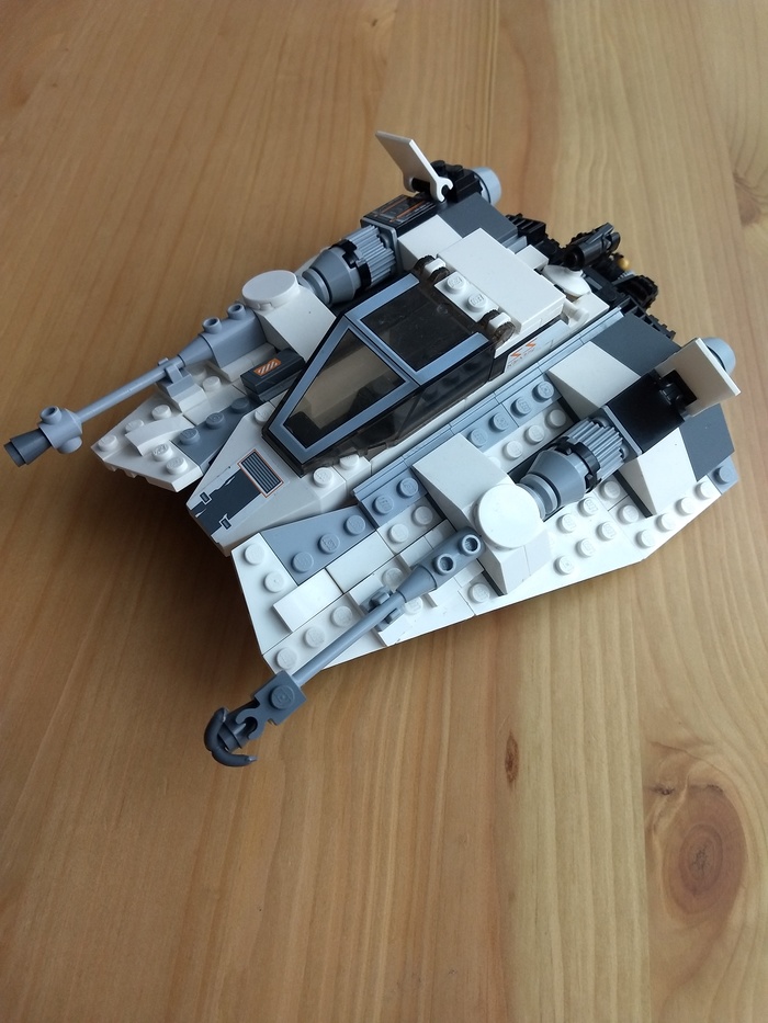 Первым в списке собранных наборов идёт 75049 Снежный истребитель. Комплектность была так себе. То есть сам истребитель собрался в обще-то нормально. отсутствовало только несколько соединительных элементов крыльев (тем где они крепятся к корпусу) и элементы кабины. Недостающие детали заменил аналогами, благо их валом, 12 кг всё таки.