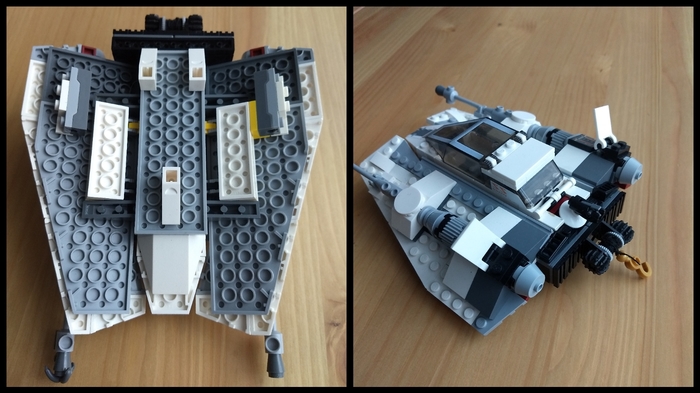 В целом выглядит неплохо. Минифигурок нет, хотя имперский шлем есть. Пушку не собирал, возможно позже, когда сократится количество деталей.