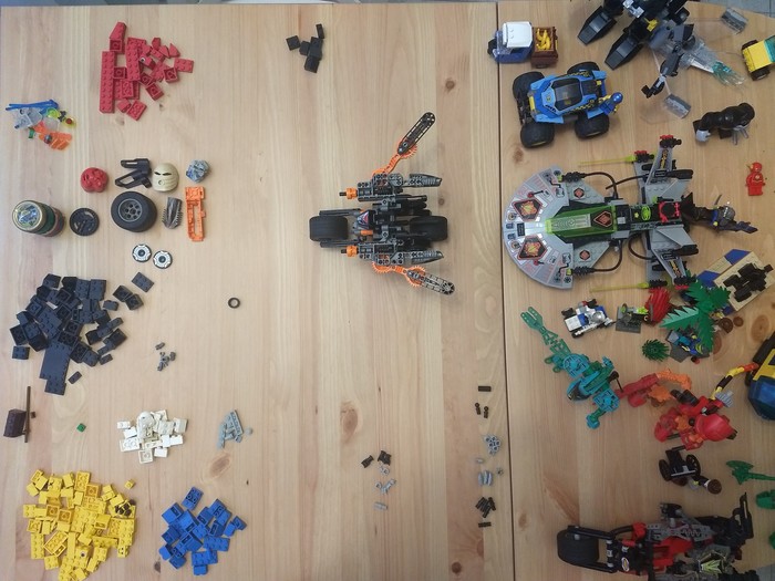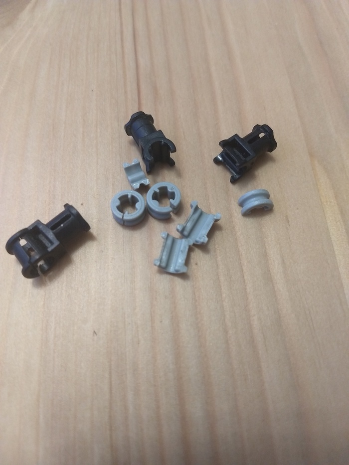 Типовые сломанные детали из техник. Это прямо-таки боль. Таких неповреждённых деталей где-то половина только от общего количества.