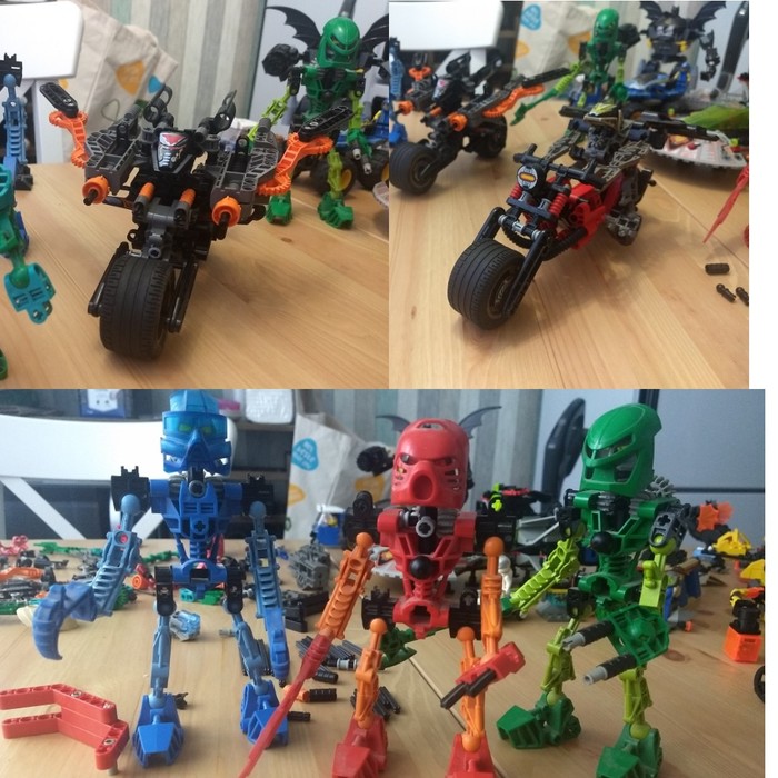 И кучка биониклов, по ним угорал в основном брат. Слева направо: 8533 Гали, 8534 Таху, 8535 Лева. Комплектность так себе. Часть деталей сломана, и это прям проблемы этих наборов поголовная.