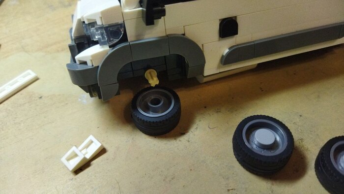 В чём проблема казалось бы? А вот в чём! При сборке я обнаружил, что не хватает деталей (в данном случае фары машины) , сами детали в виде треугольника или же тайлы(плоские детали). Это 1 минус , который обнаружил, но казалось бы на этом всё, но нет... При сборке модели, там было сказано, что пора уже закреплять колёса , но я пока решил не прикреплять и оставить на последок. В результате, когда модель была собрана, я заметил, что сама часть , где должны прикрепляться колёса КРЕСТОВАЯ , а не той же формы, как колесо. (Фото 3)