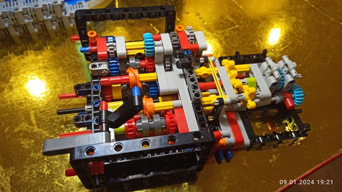 Дальше собираем и ставим двигатель. Поршни также двигаются при движении машины. Многие моменты я пропустил и не фотографировал, так как пост публиковать не планировал, сын попросил в итоге.