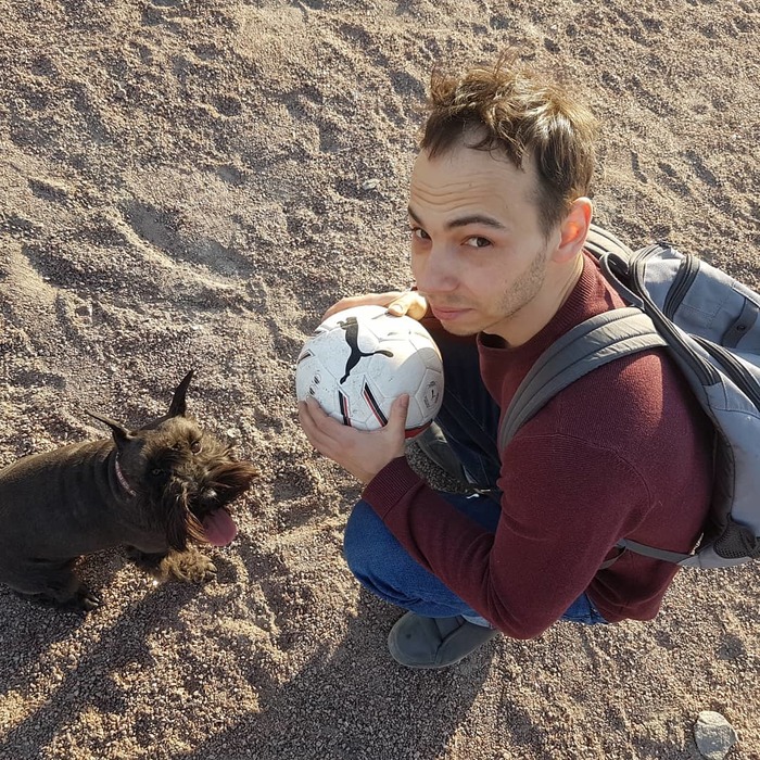 2.Люблю собак и обожаю свою Нику (мохнатое чудовище цвергшнауцер). К сожалению, вижу ее редко,поэтому кидаюсь на чужих собак в яростном приступе неадекватной любви)