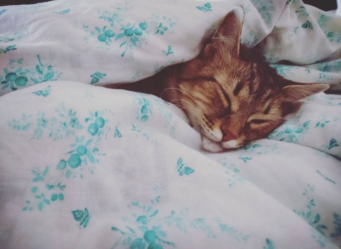 Считаю одинаково идеальными днями как активный день, проведенный в компании друзей/ на велике/ в походе/ в кругу семьи, так и "пролеженный" в кроватке с котейкой (а вот и она).