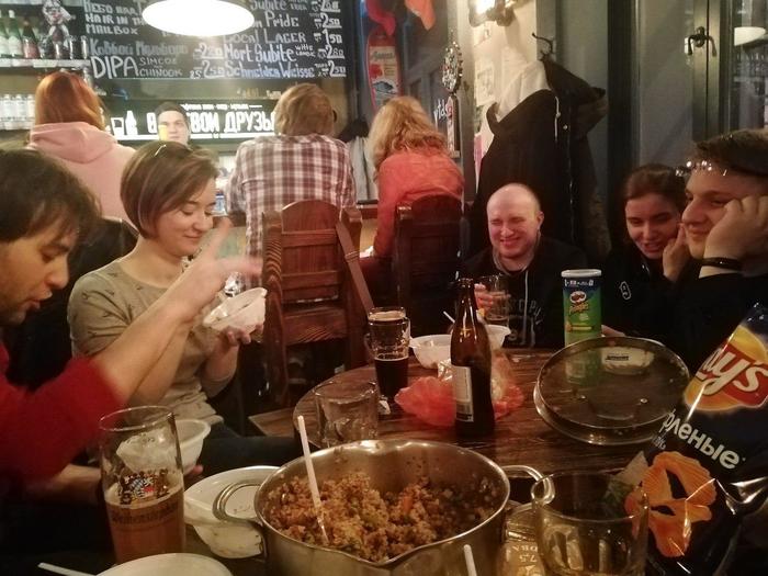 Чуть меньше года назад я вступил в секту  сообщество Пикабунда . И мне зашло. Как и подобает чатику, он прошел свой небольшой жизненный путь, свёл вместе неопределённое количество людей, создал пару ячеек общества, и даже сгенерировал пост в Лучшем с нашим, так сказать, авторским контентом. И продолжает жить. Мы успешно существуем, устраивая практически еженедельно сходки в барах, иногда с объективно странными интерактивами. Например, мы ели гречку в баре, собственноручно приготовленную одним из участников. Впрочем, конкретно в этом баре после огромного надувного члена бармены уже особо ничему не удивляются…