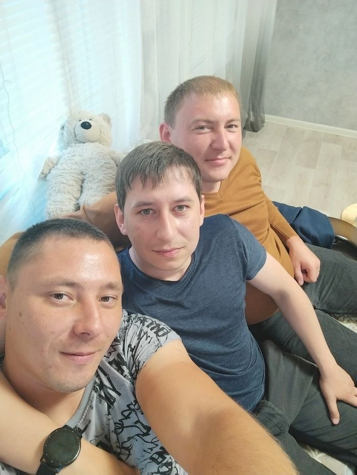 А теперь заинтересованным кто дочитал😂: Работаю в МО г. Химки, тут и проживаю основное время(организация снимает и оплачивает квартиру). Я сам родом с Оренбургской области, г. Бугуруслан, там есть свой дом, считай как дача, там вечный ремонт😃 На фото я по центру(и да, я тут чет пухленький, но щас вроде похудел😃) Рост 174, вес примерно до 75🤣