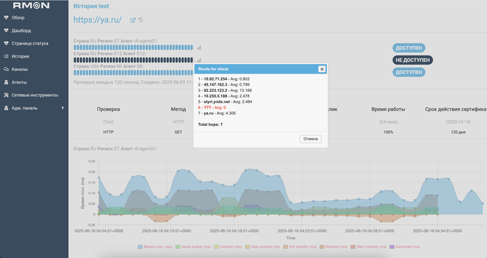 Нам часто пишут пользователи, которые хотят мониторить качество каналов связи — не просто проверять “доступен ли хост”, а действительно оценивать стабильность сети и реагировать на деградации. Один из таких пользователей недавно подключил мониторинг для нескольких регионов, и его запрос дал нам полезный импульс для доработок.