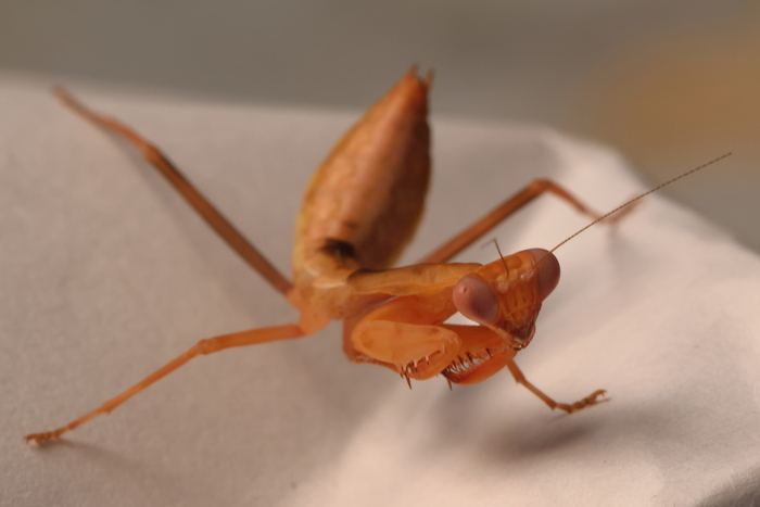 От привычных нашему глазу "мантис религиозы" и "транскавказики" отличается еще и цвет, практически всегда вот такого песочного оттенка.
