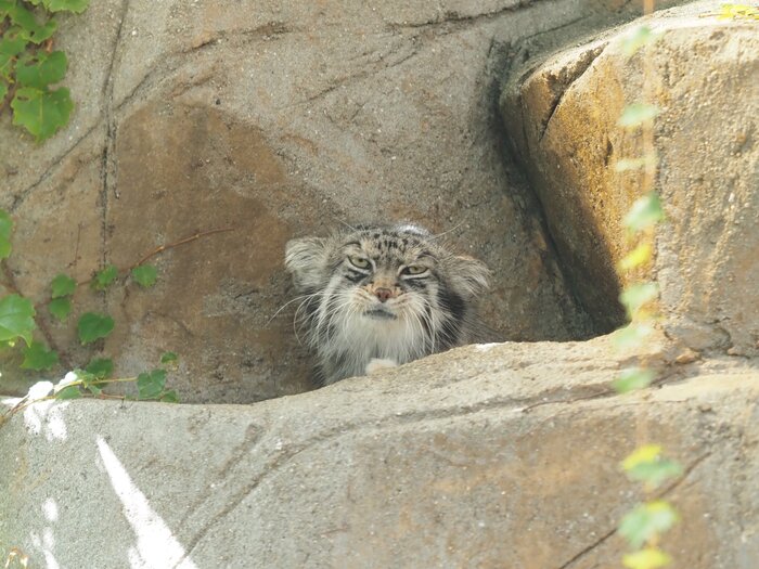 Видимо, из-за того, что первые годы жизни Миня прожила в вольере, закрытом от посетителей, адаптация на новом месте проходит очень медленно: юная манулесса выходит из закрытого домика только тогда, когда зоопарк закрыт и кругом тишина.