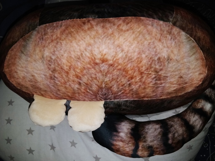 Этой ночью взяла с собой манула спать. Он довольно большой для обнимания, плотный, пришитый хвост совсем не мешает.