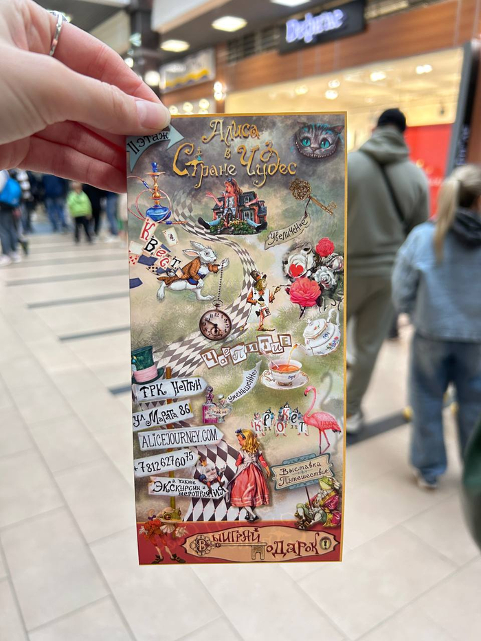 Мой мозг отказался структурировать информацию и выделить ключевую информацию. Как будто это квест с чаепитием, где игроки смогут увеличиться и уменьшиться. Однако дальше написано про выставку и путешествие (через запятую или тире - тоже непонятно). А входит ли крокет?