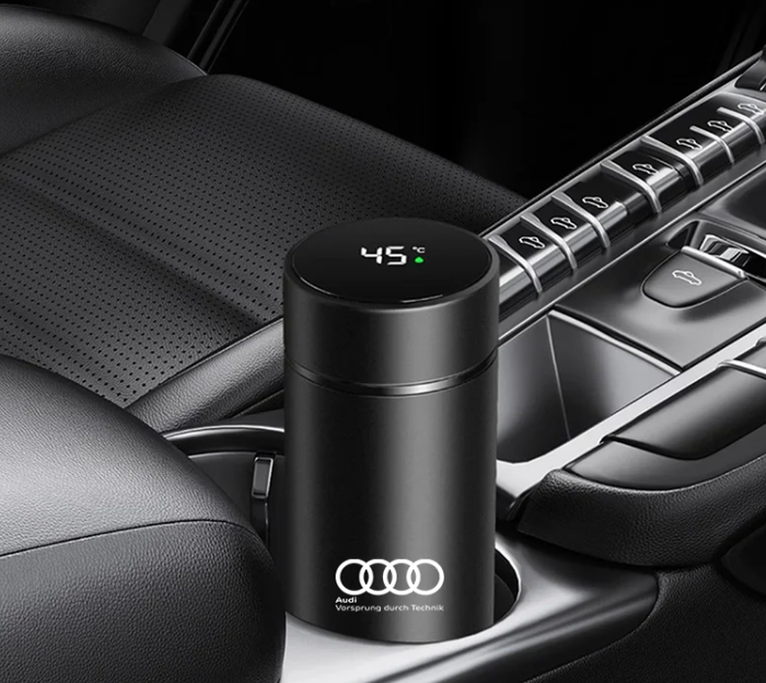 12. Автомобильная вакуумная чашка-термос с дисплеем температуры Audi Sport Сочетает в себе стиль и функциональность. Ее современный дизайн с логотипами Audi подчеркивает статус владельца и его внимание к деталям. Термос поддерживает оптимальную температуру напитка на протяжении нескольких часов, сохраняя вкус и аромат. Встроенный дисплей отображает температуру жидкости, позволяя избежать обжигания или переохлаждения напитка.