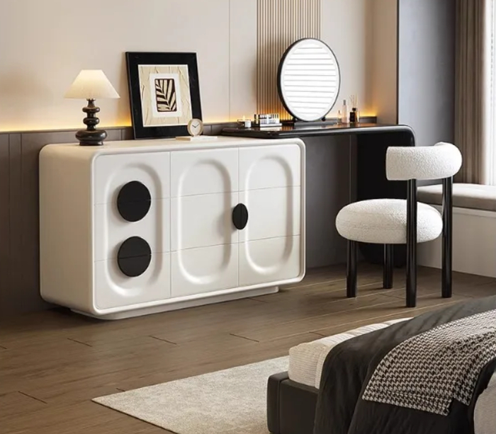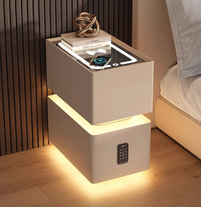 Минималистичный дизайн сочетается с функциональностью — встроенный датчик движения активирует подсветку. Имеет отделения для хранения мелочей и встроенный USB-порт. Идеален для современной спальни или небольшого пространства. Компактный, но вместительный.