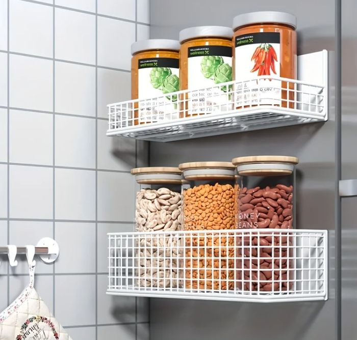 Легко крепится к холодильнику или металлическим поверхностям без сверления. Организует специи, масла и кухонные принадлежности. Сохраняет порядок и экономит место на столешнице. Изготовлена из прочного металла с защитным покрытием.