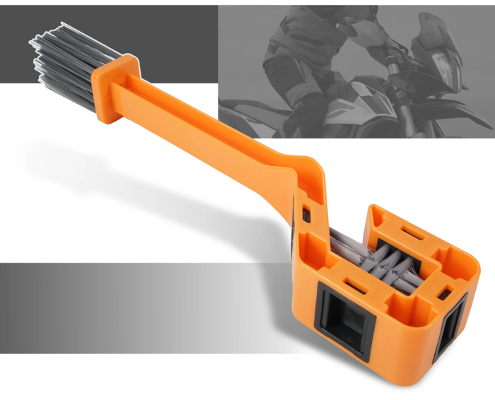 Трёхгранная конструкция позволяет очищать цепь с нескольких сторон одновременно. Удобно удаляет грязь, масло и пыль, не повреждая металлические поверхности. Подходит для мотоциклов KTM, Honda, Yamaha и других. Прочная ручка гарантирует долговечность инструмента.