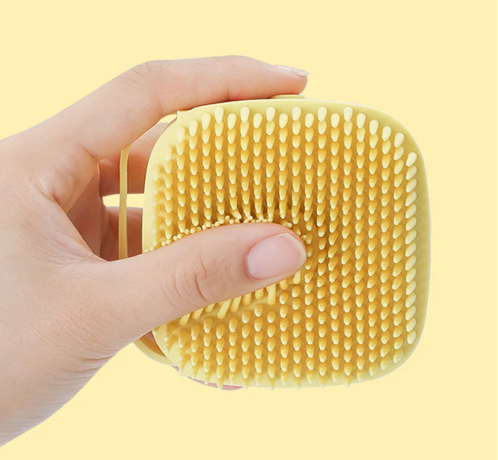Мягкие силиконовые щетинки обеспечивают бережный уход за шерстью, не раздражая кожу питомца. Встроенный дозатор позволяет удобно наносить шампунь. Щетка подходит для кошек и собак всех пород. Эргономичная форма облегчает удержание даже в мыльных руках.