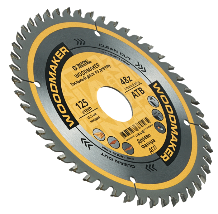 Профессиональный диск диаметром 125 мм с 48 зубьями для чистой резки дерева. Изготовлен из твёрдого сплава с алмазным покрытием для длительного ресурса. Отлично справляется с плотной древесиной и МДФ. Совместим с большинством УШМ.