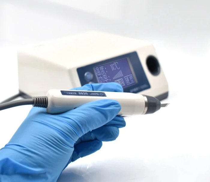 Инструмент для точной резки и обработки стоматологических материалов с использованием ультразвука. Позволяет работать без перегрева и обеспечивает гладкий край. Применяется как в лабораториях, так и на приёмах. Компактная и эргономичная форма упрощает использование.