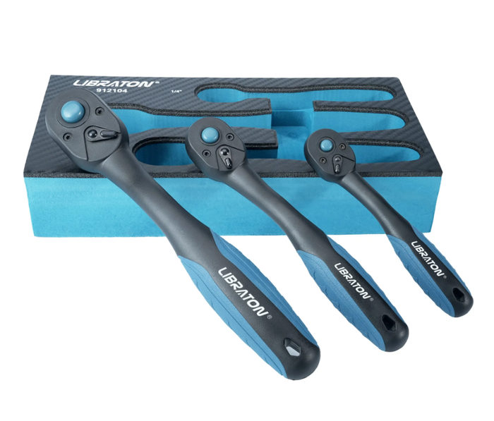 Комплект из трёх трещоток разных размеров для работы с крепежом. Обеспечивает надёжный зацеп и точную работу даже в труднодоступных местах. Удобные рукоятки с нескользящим покрытием. Прочный металл гарантирует долгий срок службы.