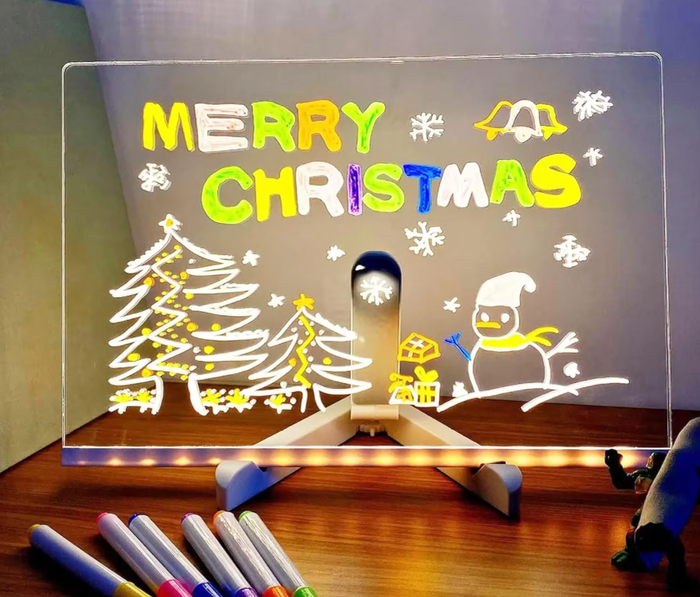 Прозрачная доска с подсветкой оживляет любые рисунки. Можно рисовать маркерами, стирать и начинать заново. Отлично подходит для детей — развивает фантазию и мелкую моторику. В комплекте идут маркеры, так что набор сразу готов к использованию.