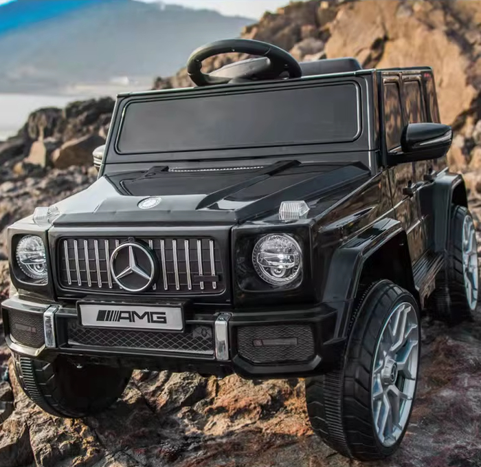 Миниатюрный черный кабриолет в стиле G-Class выглядит по-настоящему брутально. Машинка подойдет для детей от 3 лет, оснащена электроприводом и прочной пластиковой конструкцией. Ребенок сможет управлять сам, развивая координацию и уверенность. Прогулки на таком авто превращаются в увлекательное приключение.
