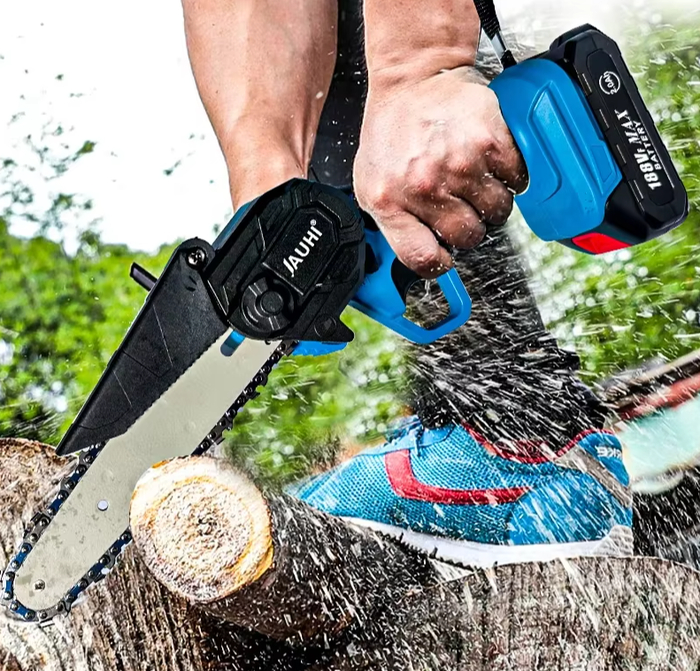 Компактная аккумуляторная пила с цепью на 6 дюймов создана для обрезки деревьев и кустарников. Удобна для работы в саду, где нет доступа к электросети. Легкая, но при этом достаточно мощная для бытовых задач. Безопасна и проста в использовании.