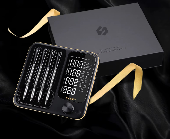 Термометр передаёт температуру напрямую в приложение, что позволяет следить за приготовлением мяса в духовке, гриле или коптильне без постоянного открытия крышки. Зонд быстро фиксирует показания в центральной части продукта, где точность имеет решающее значение.