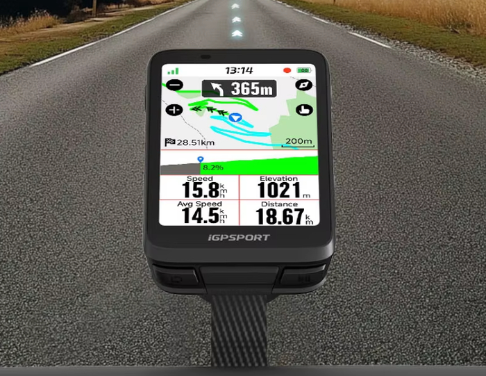 Велокомпьютер оборудован сенсорным экраном, который остаётся читаемым даже при ярком солнце. Устройство фиксирует скорость, маршрут, высоту, ритм педалирования и совместимо с датчиками пульса.
