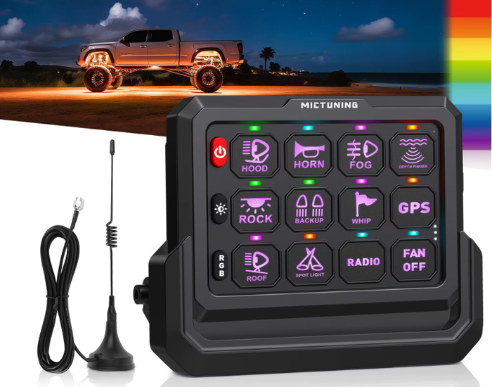 Панель создаёт централизованное управление дополнительными устройствами в внедорожнике, багги, катере или кемпере.