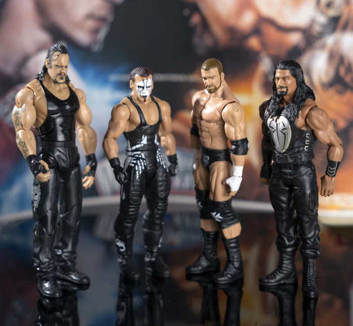 Фигурки выполнены с высокой детализацией: прорисованы мимика, элементы костюмов, аксессуары и фирменные черты каждого рестлера.