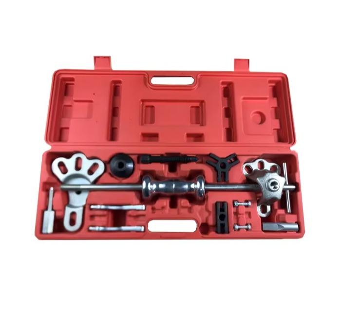 Комплексный набор включает съемник вмятин, скользящий молоток и прочие инструменты для ремонта шин и кузова. Подходит как для профессионалов, так и для любителей. Прочные материалы обеспечивают надежность работы. Отличный помощник в гараже или автосервисе.