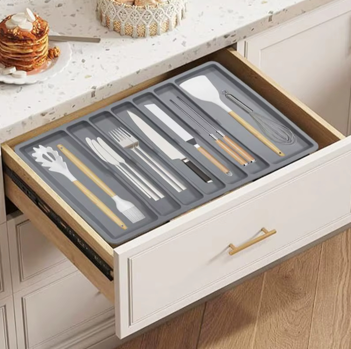 Органайзер упорядочит кухонные инструменты и освободит рабочее пространство. Семь отдельных ячеек позволяют удобно разместить ложки, лопатки, венчики и прочие аксессуары. Силикон легко моется, не впитывает запахи и устойчив к температуре. Яркий и гибкий помощник для чистой и аккуратной кухни.