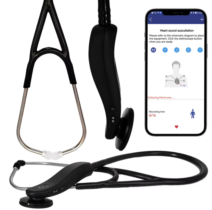 Современный цифровой стетоскоп с беспроводной передачей данных для точной диагностики. Высокое качество звука позволяет быстро и эффективно прослушивать сердечные и лёгочные шумы. Лёгкий, портативный и удобный в использовании. Идеален для врачей и студентов-медиков.