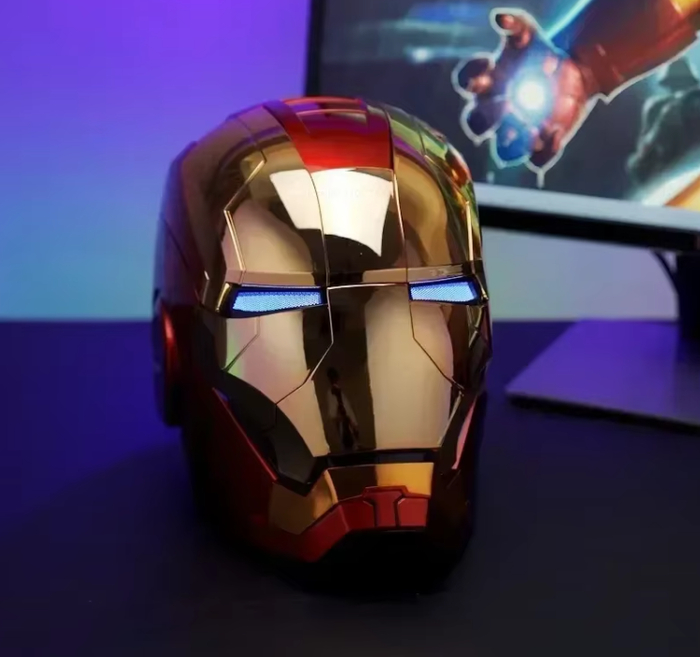 Шлем в масштабе 1:1 впечатляет реалистичной детализацией и эффектами. Он оснащён светящимися глазами и автоматическим механизмом открывания лицевой части. Отлично подойдёт как для коллекционеров, так и для косплея. Настоящее украшение любой фанатской коллекции Marvel.