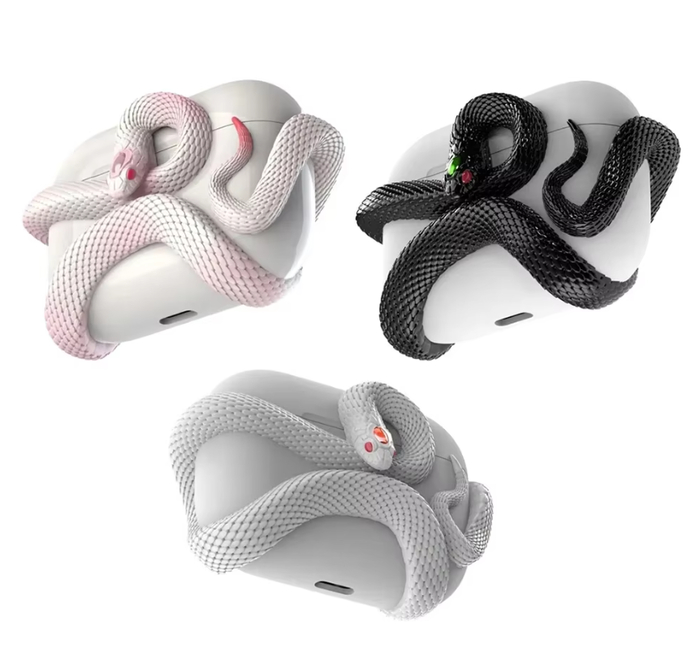 Стильный защитный чехол с оригинальным змеиным узором придаёт AirPods Pro эффектный вид. Прочное покрытие надёжно защищает наушники от царапин и ударов. Компактная конструкция обеспечивает лёгкий доступ к зарядке. Отличный аксессуар для любителей выделяться.