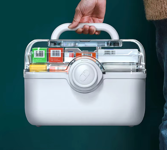 Практичный органайзер с тремя уровнями для хранения таблеток, мазей и медицинских принадлежностей. Компактная, но вместительная конструкция помогает поддерживать порядок в аптечке. Прочный пластиковый корпус защищает содержимое от влаги и повреждений. Удобная ручка позволяет легко переносить органайзер.