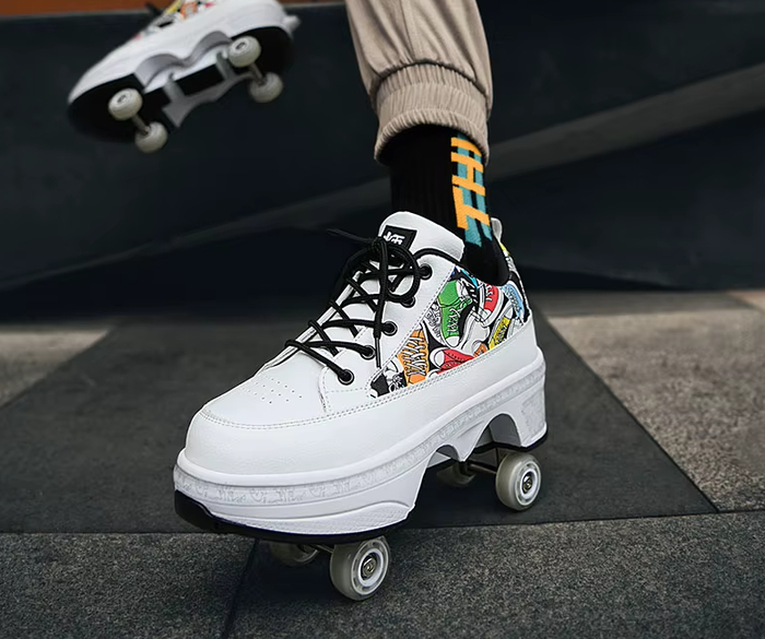 Необычные ролики трансформируются, позволяя легко переключаться между режимами скольжения и ходьбы. Идеальны для активного отдыха и прогулок в городе. Прочная конструкция выдерживает интенсивную нагрузку, а стильный дизайн привлекает внимание. Отличный подарок подростку или взрослому любителю движения.