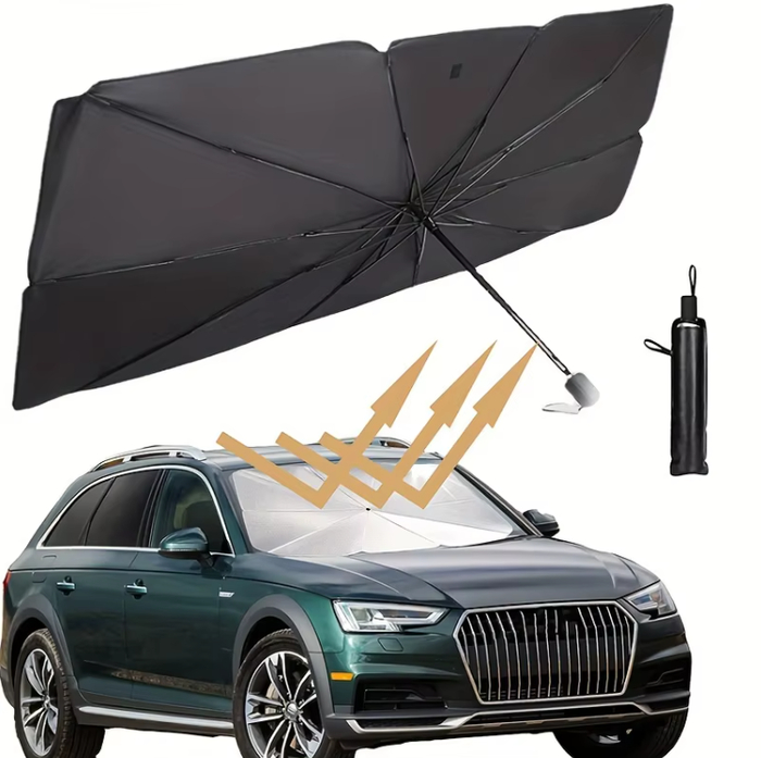 Складной зонт спасёт салон автомобиля от перегрева в солнечные дни. Он быстро раскладывается и фиксируется на лобовом стекле. Отражающее покрытие снижает температуру внутри машины и защищает материалы от выгорания. Компактно складывается и не занимает места.