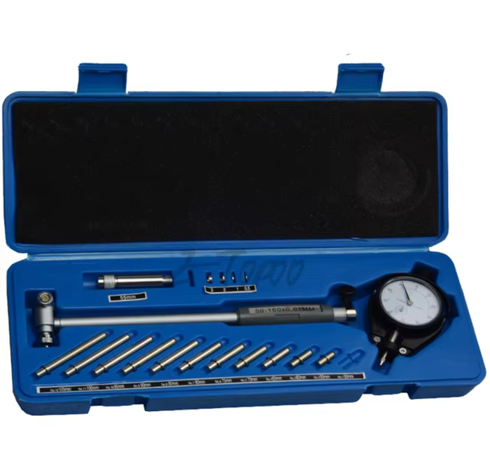 Циферблатный индикатор диаметра предназначен для точных измерений внутренних диаметров и глубин, особенно в двигателях и других механических устройствах. Диапазон измерения составляет 50–160 мм с точностью до 0,01 мм, что делает его идеальным для точной работы в машиностроении и ремонте.