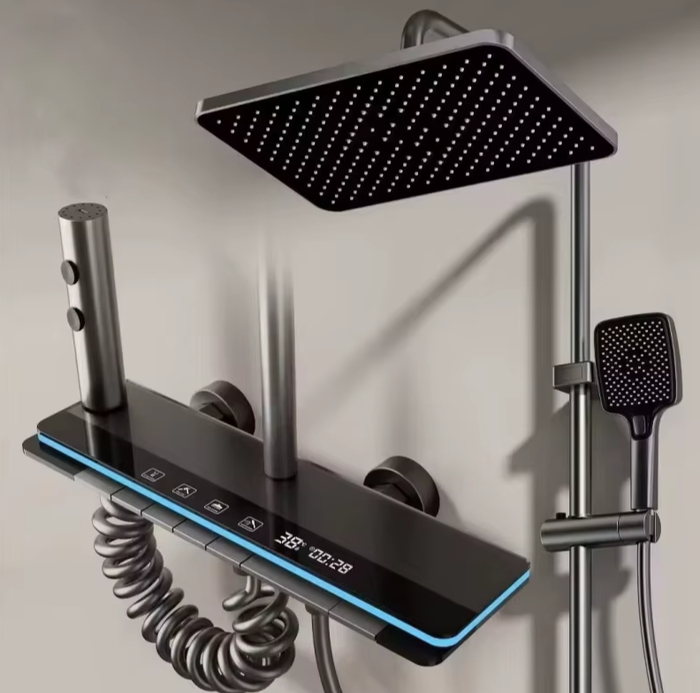 Эта современная душевая система выполнена из нержавеющей стали и оснащена цифровым дисплеем для контроля температуры воды. Она обеспечивает комфорт и удобство использования, а также добавляет элегантность и стиль в ванную комнату.