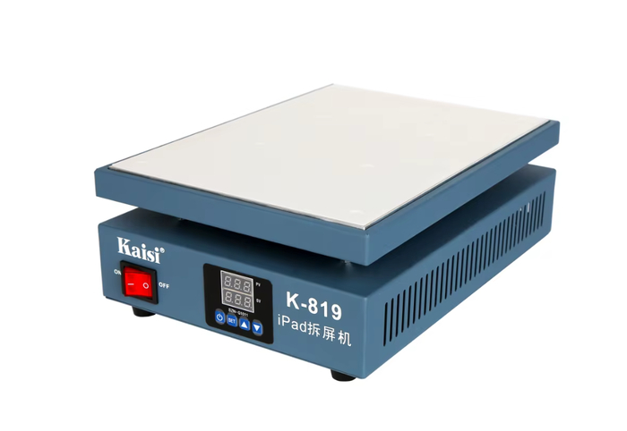 Нагревательная платформа KAISI K-819 предназначена для ремонта электроники, в частности iPad. Она обеспечивает равномерный и контролируемый нагрев, что необходимо при снятии или установке компонентов. Платформа является незаменимым инструментом для сервисных центров и техников.