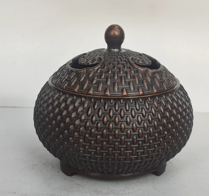 Элегантная металлическая подставка для благовоний в ретро стиле с античной бронзовой отделкой и крышкой. Идеально подходит для создания расслабляющей атмосферы в доме, добавляет изысканности в интерьер.