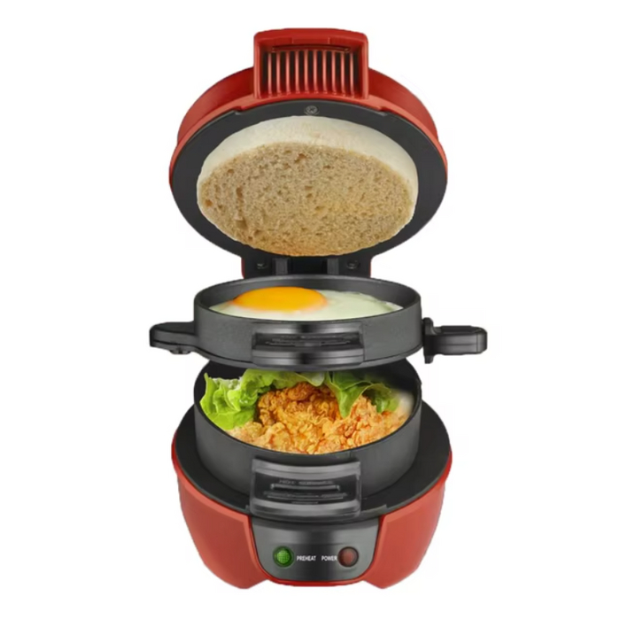 Компактное устройство для приготовления завтраков сочетает в себе возможности жарки яиц, выпекания хлеба и приготовления бургеров. Это идеальный выбор для быстрого и удобного приготовления утренних блюд, поддерживает как 220 В, так и 110 В.