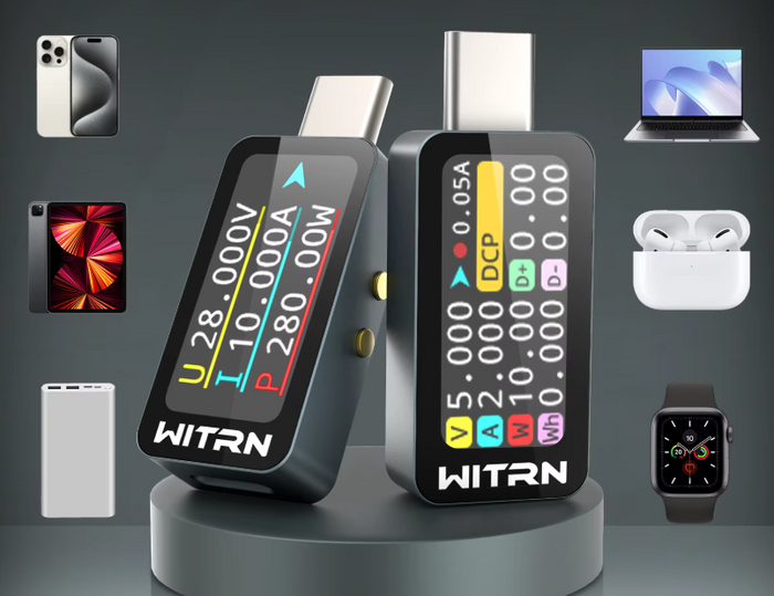 Измеритель мощности с 0,96-дюймовым цветным IPS ЖК-дисплеем предназначен для измерения напряжения и тока постоянного тока в диапазоне 4-28 В. Устройство подходит для тестирования зарядных устройств телефонов типа C, помогая определить эффективность зарядки.