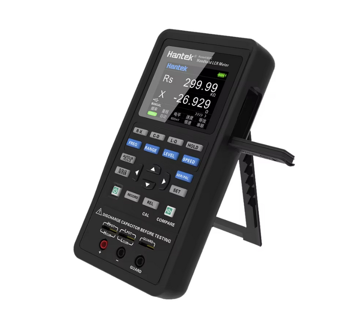Прибор для измерения цветовых различий в лакокрасочных материалах. Оснащен большим дисплеем и кнопками управления, подставкой для регулировки положения и микропроцессором для обработки измерений.